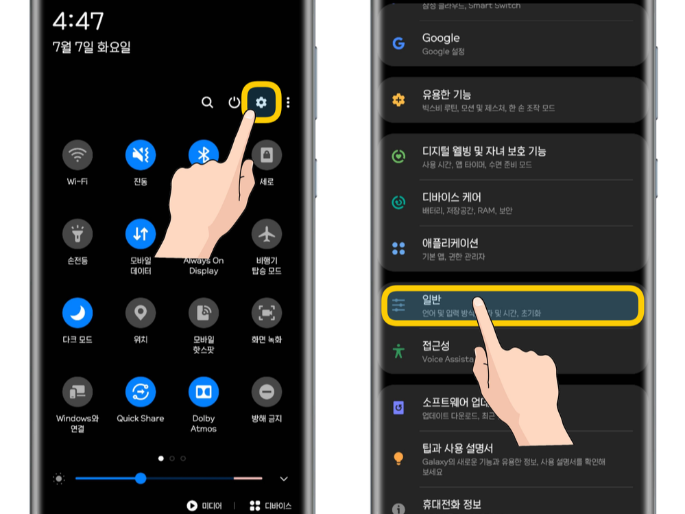 - 일반 관리 항목을 터치합니다.