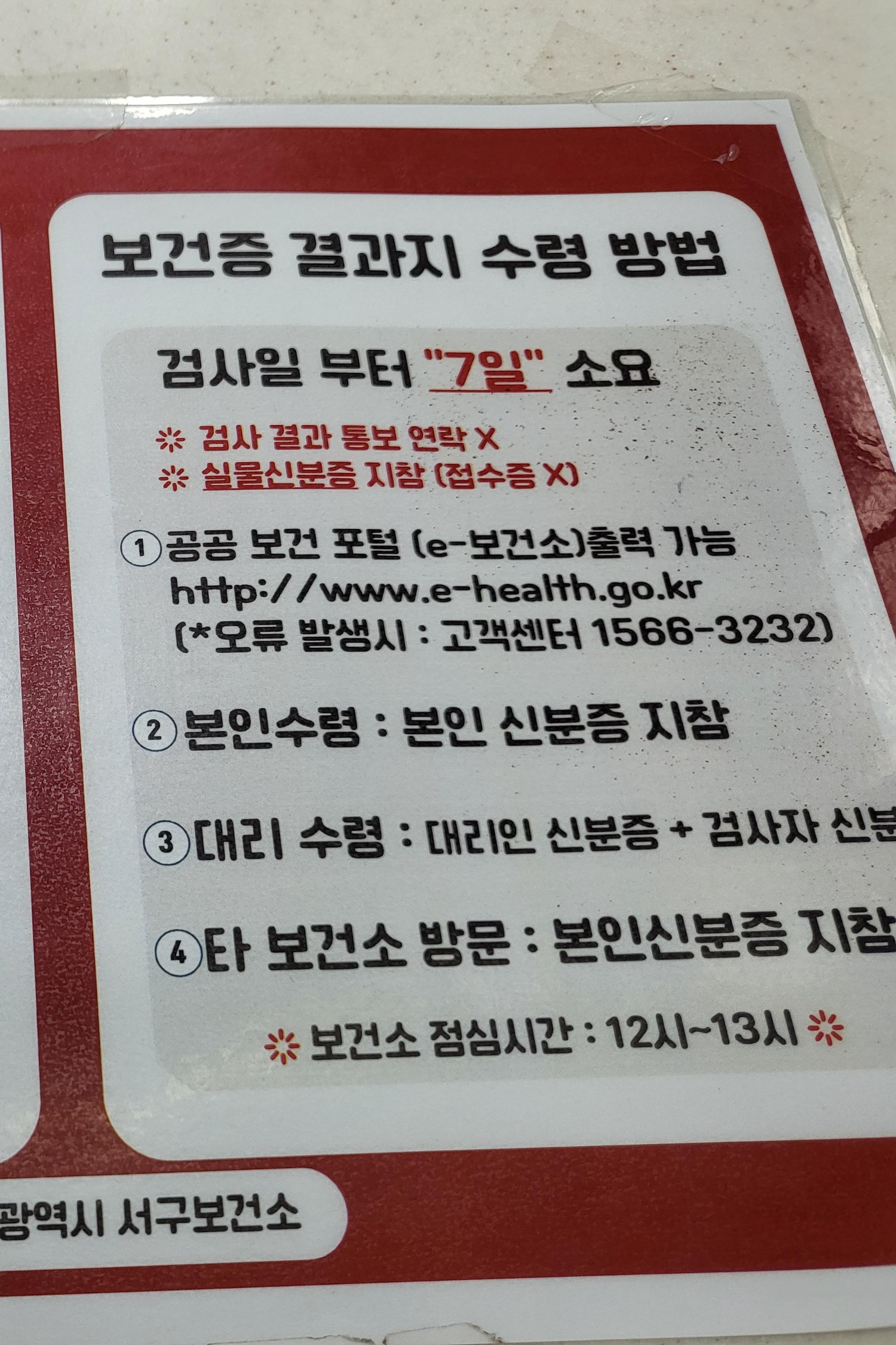 - 검사 결과 이상 없으면 건강진단결과서(보건증) 발급