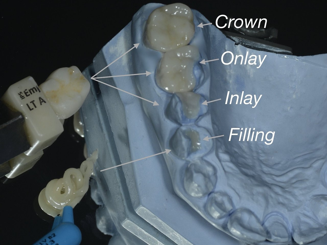 - 인레이: 치아 내부를 메우는 보철물로 비교적 작은 조각 형태가 많습니다.